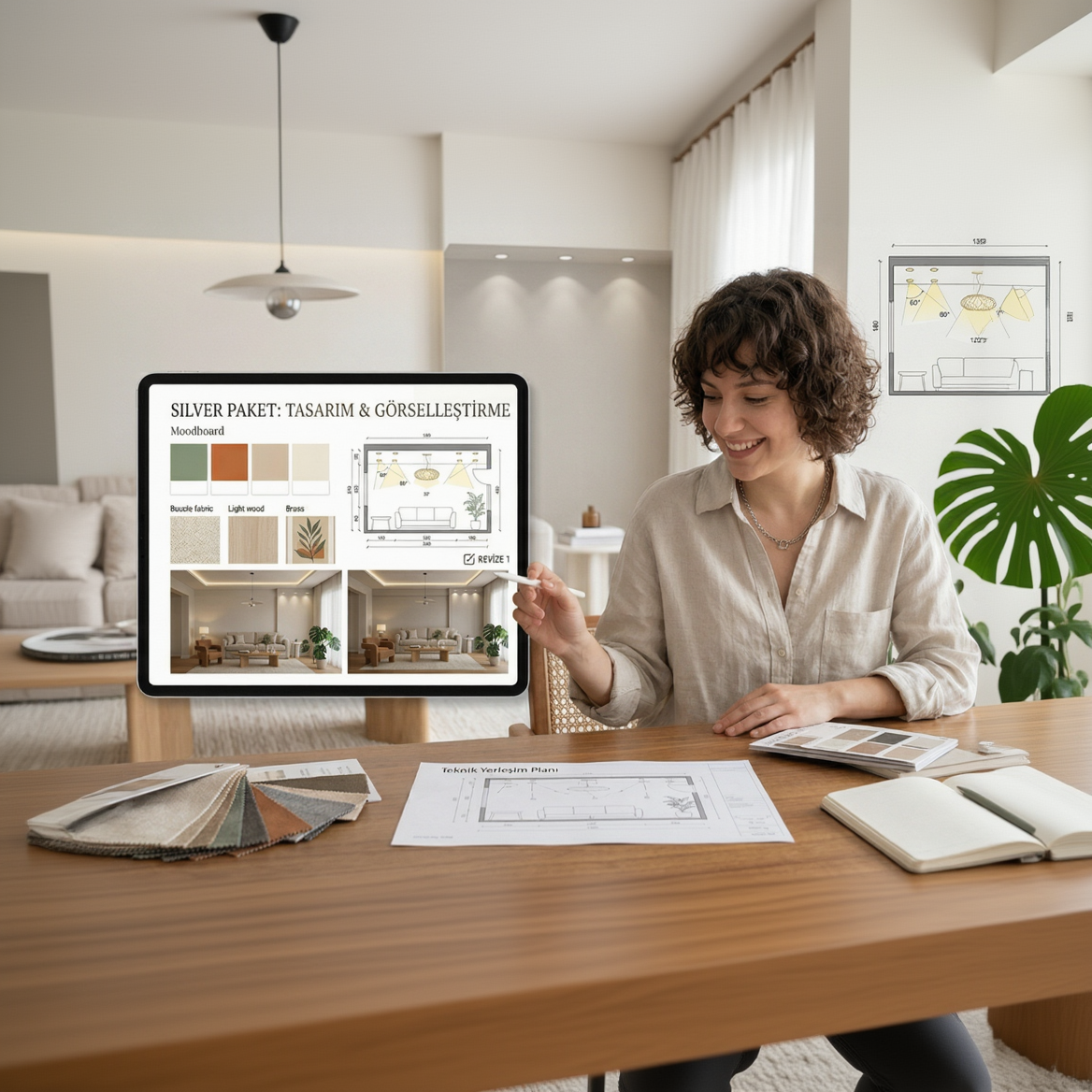 En popüler paketimizdir. Yerleşim planı hatalarını önler ve hayalinizdeki odanın fotoğraf gerçekliğinde nasıl duracağını görmenizi sağlar.