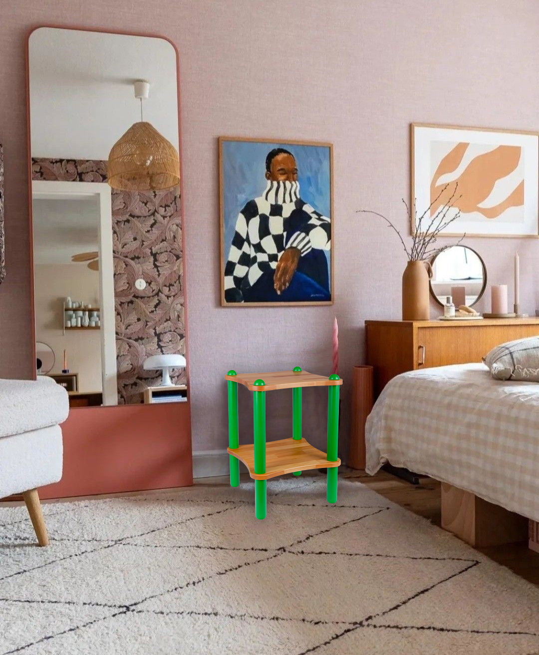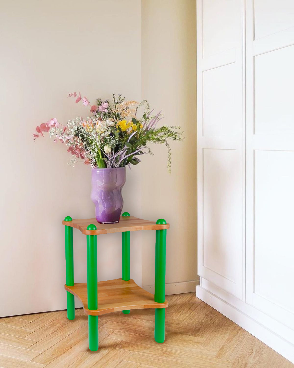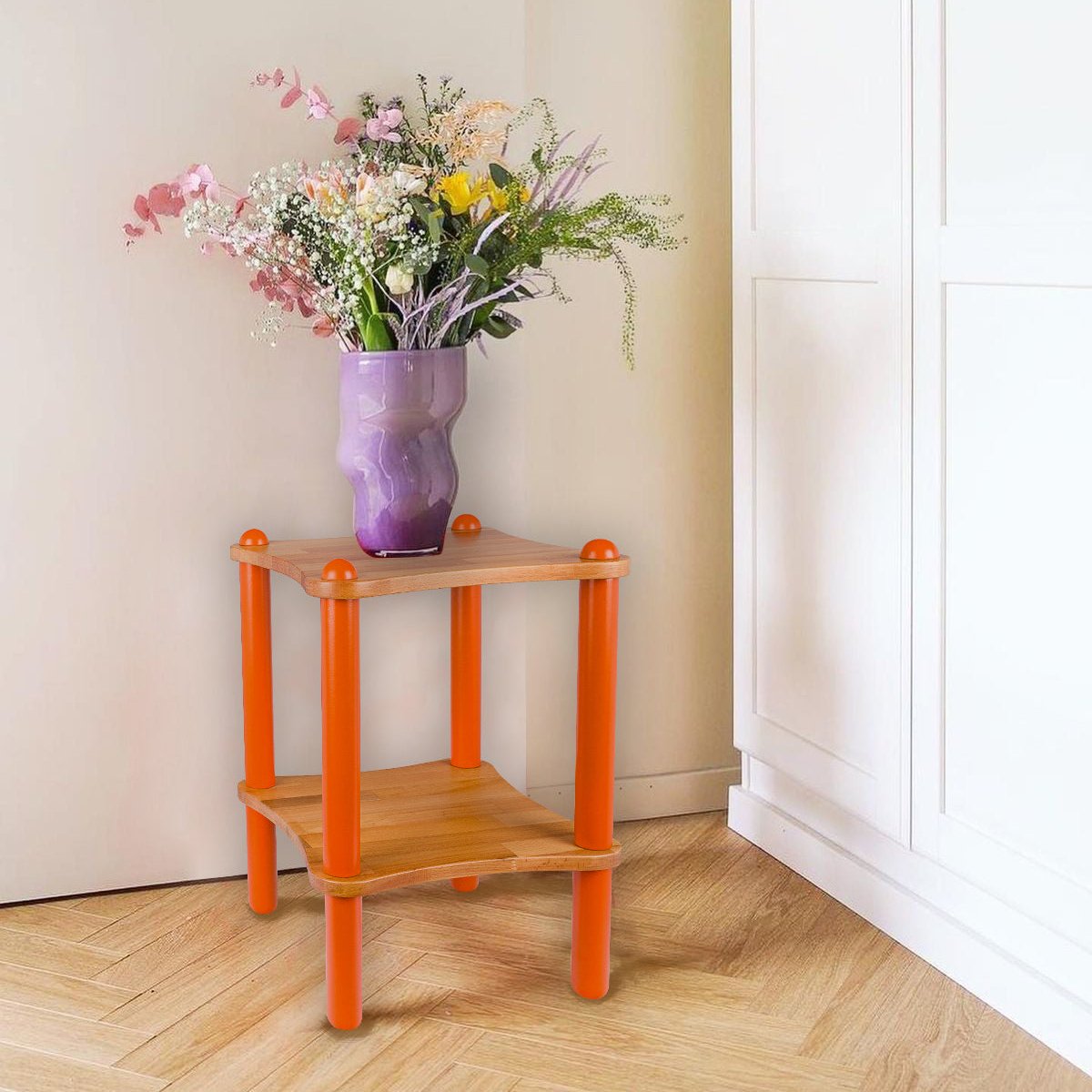 Basic Ahşap ve Renkli Demonte Yan Sehpa